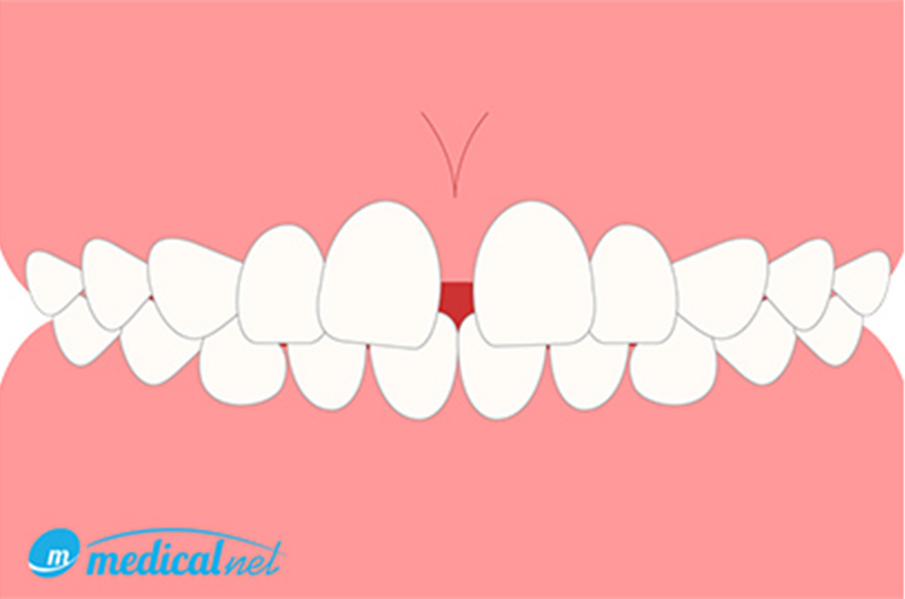 正中とは、上下歯列を縦に見たときの中央のラインで、この場合は上顎の真ん中の歯(上の前歯)のすき間が離れていることです。一般的に「すきっ歯」といわれる状態です。